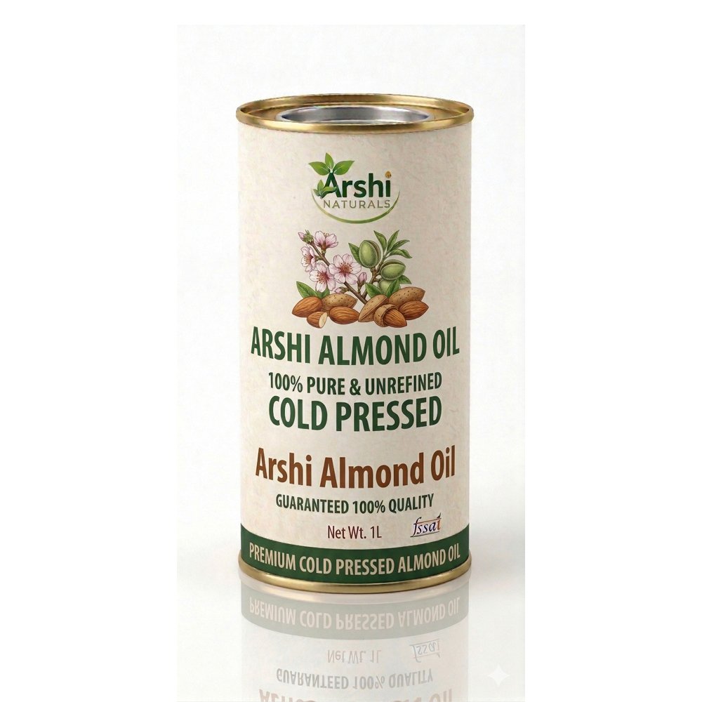 Arshi Naturals Cold Pressed Almond Oil is made from carefully selected almonds using traditional extraction methods that retain its natural vitamins and nutrients. Known for its high Vitamin E content, this pure almond oil deeply nourishes skin, strengthens hair, and supports overall wellness. It can be used as a natural massage oil, hair oil, or even as a dietary supplement. Free from chemicals, preservatives, and artificial additives, this unrefined almond oil is a perfect choice for those looking for natural skincare, hair care, and healthy living solutions.