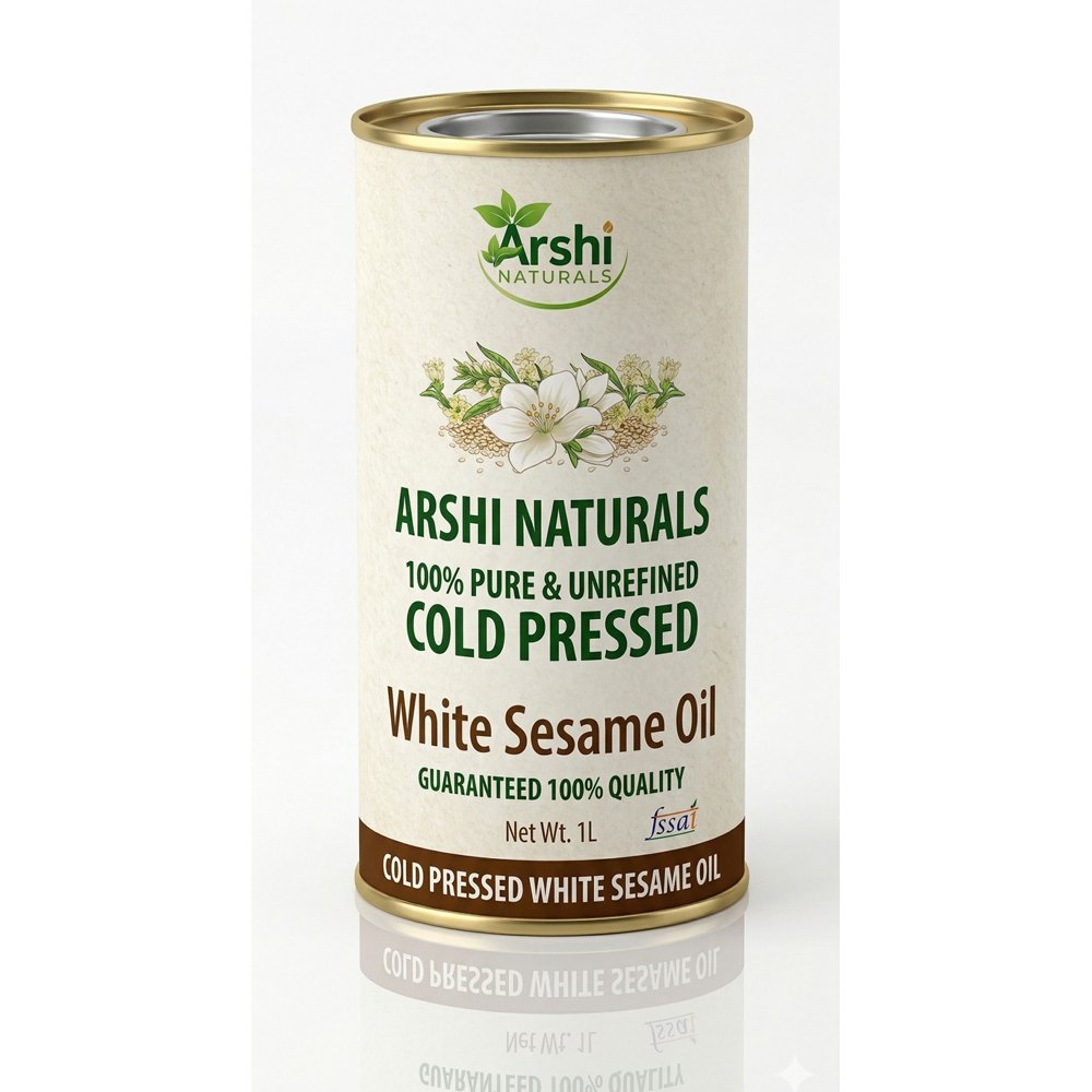 Arshi Naturals Cold Pressed White Sesame Oil is extracted using traditional wooden press methods to preserve its natural aroma, nutrients, and health benefits. Rich in antioxidants, calcium, and healthy fats, this oil supports digestion, heart health, and overall well-being. Its light flavor makes it ideal for everyday cooking, while its natural properties also make it suitable for traditional uses like oil pulling and massage. Unrefined and chemical-free, this sesame oil ensures purity and authentic taste in every drop.