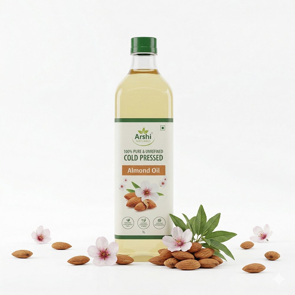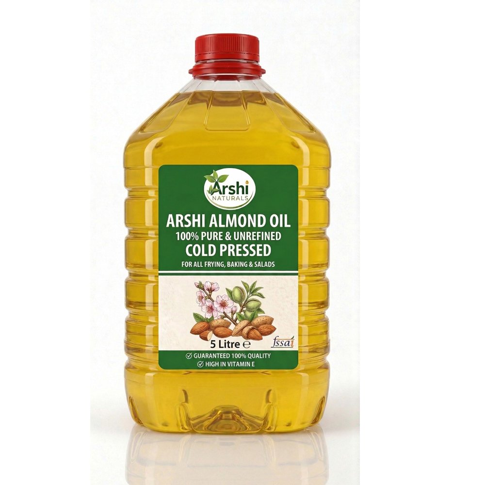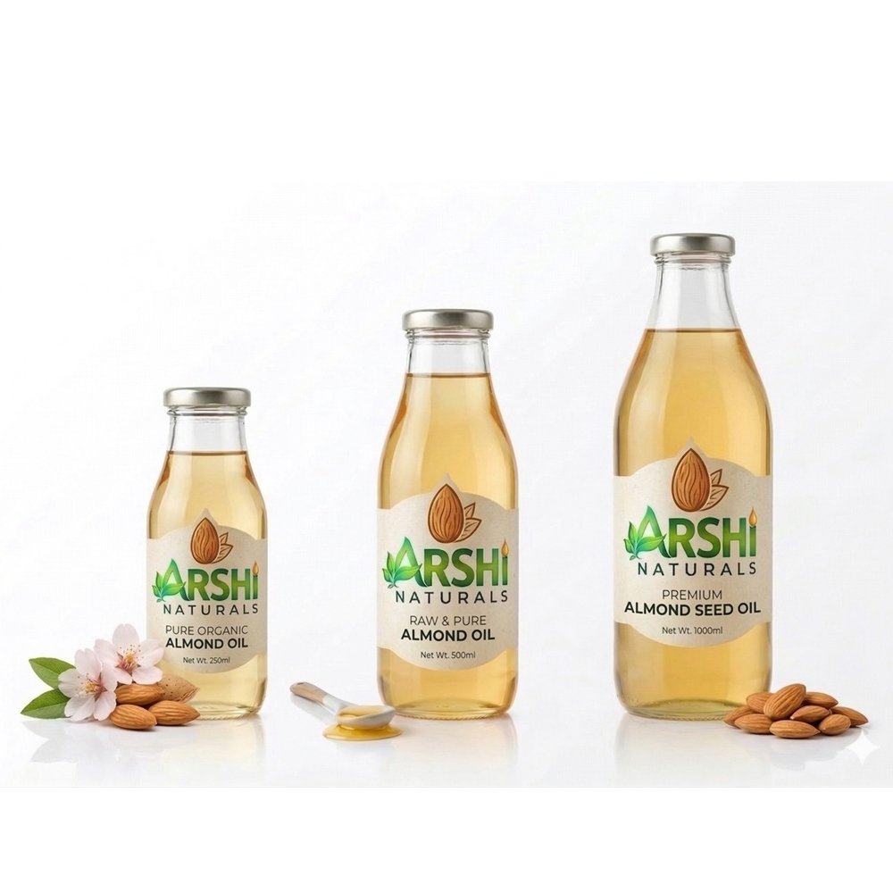 Arshi Naturals Cold Pressed Almond Oil is made from carefully selected almonds using traditional extraction methods that retain its natural vitamins and nutrients. Known for its high Vitamin E content, this pure almond oil deeply nourishes skin, strengthens hair, and supports overall wellness. It can be used as a natural massage oil, hair oil, or even as a dietary supplement. Free from chemicals, preservatives, and artificial additives, this unrefined almond oil is a perfect choice for those looking for natural skincare, hair care, and healthy living solutions.