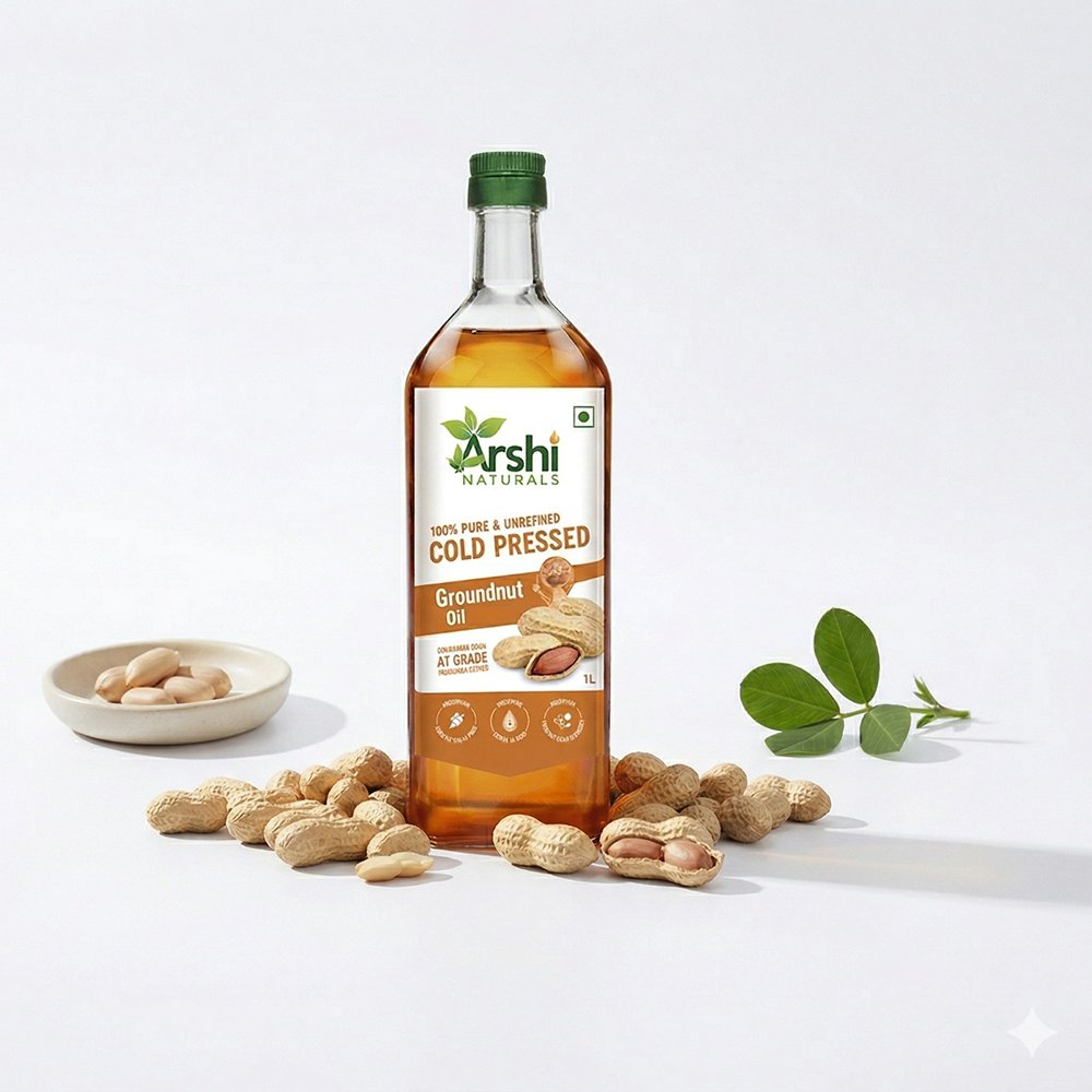 Arshi Naturals Cold Pressed Groundnut Oil is extracted from premium-quality peanuts using traditional wooden press (kachi ghani) methods without heat or chemical processing. This natural extraction helps retain essential nutrients, antioxidants, and healthy monounsaturated fats that support heart health and overall wellness. With its mild nutty aroma and rich taste, it is ideal for Indian cooking, including frying, sautΓ©ing, and deep cooking. Unrefined and free from additives, preservatives, and artificial flavors, this cold pressed groundnut oil ensures purity, better digestion, and authentic taste in every meal. A perfect choice for those seeking healthy cooking oil alternatives.