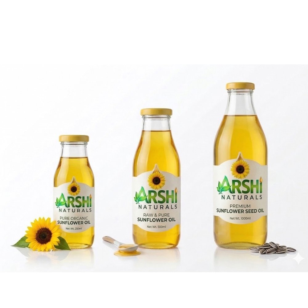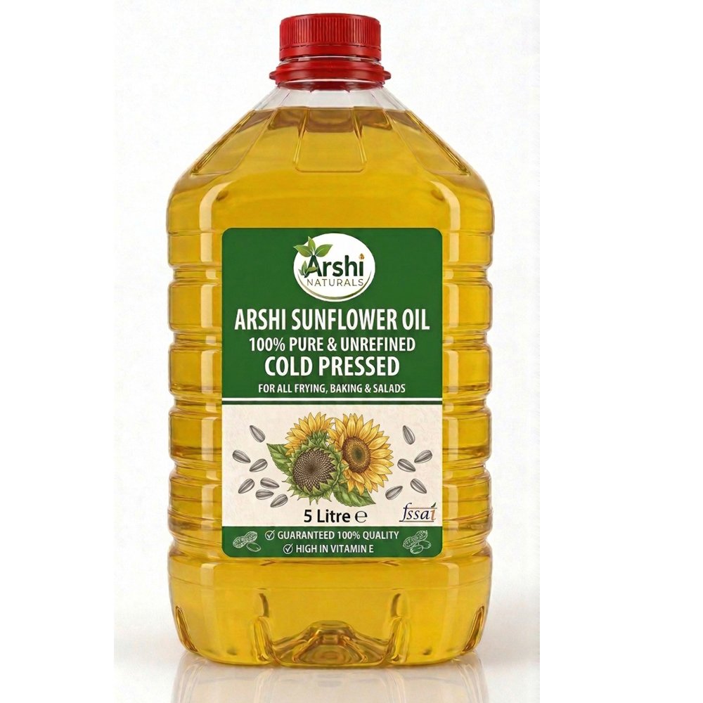 Arshi Naturals Cold Pressed Sunflower Oil is carefully extracted from high-quality sunflower seeds using a no-heat, chemical-free process. Rich in Vitamin E and essential fatty acids, this natural sunflower oil supports heart health, skin nourishment, and overall immunity. Its light texture and neutral flavor make it suitable for everyday cooking, including frying, baking, and sautΓ©ing. Free from refining, bleaching, and deodorizing processes, this unrefined sunflower oil preserves its natural goodness, making it an ideal choice for a healthy lifestyle.
